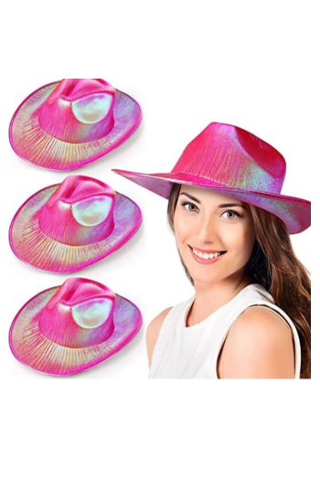 Partinin yıldızı olun!✨ Neon hologramlı kovboy şapkasıyla tüm gözler sizin üzerinizde. 🎉 Pembe, mavi ve beyaz renk seçenekleriyle özel günler için mükemmel!