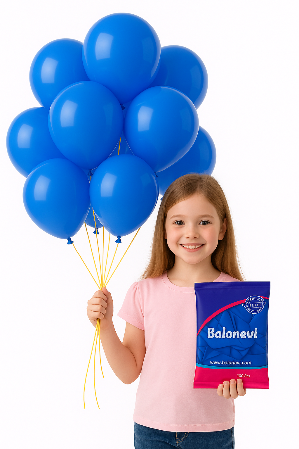 Balonevi 12” Premium Lateks Balon (100’lü Paket) – Mavi