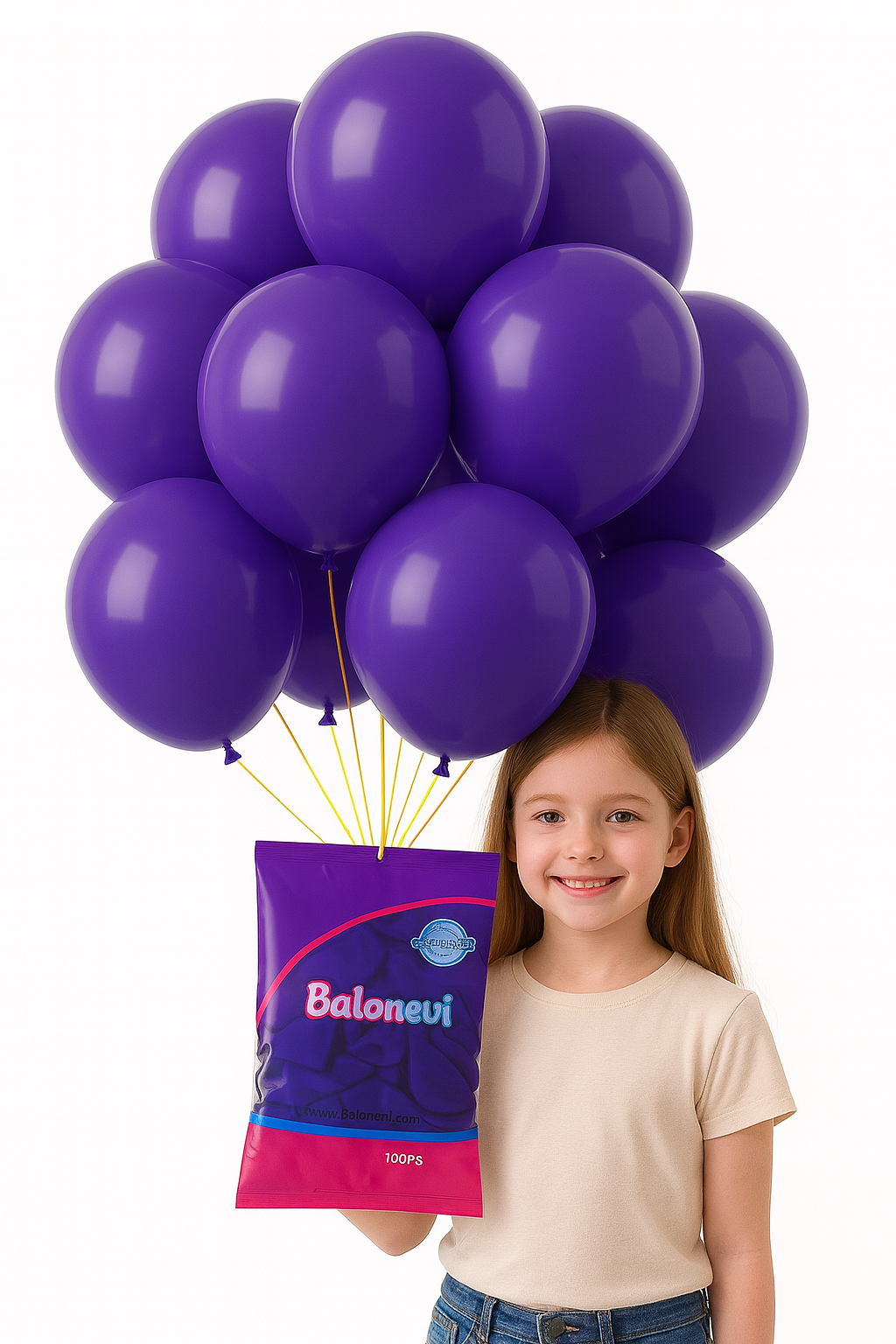 Balonevi 12” Premium Lateks Balon (100’lü Paket) – Mor