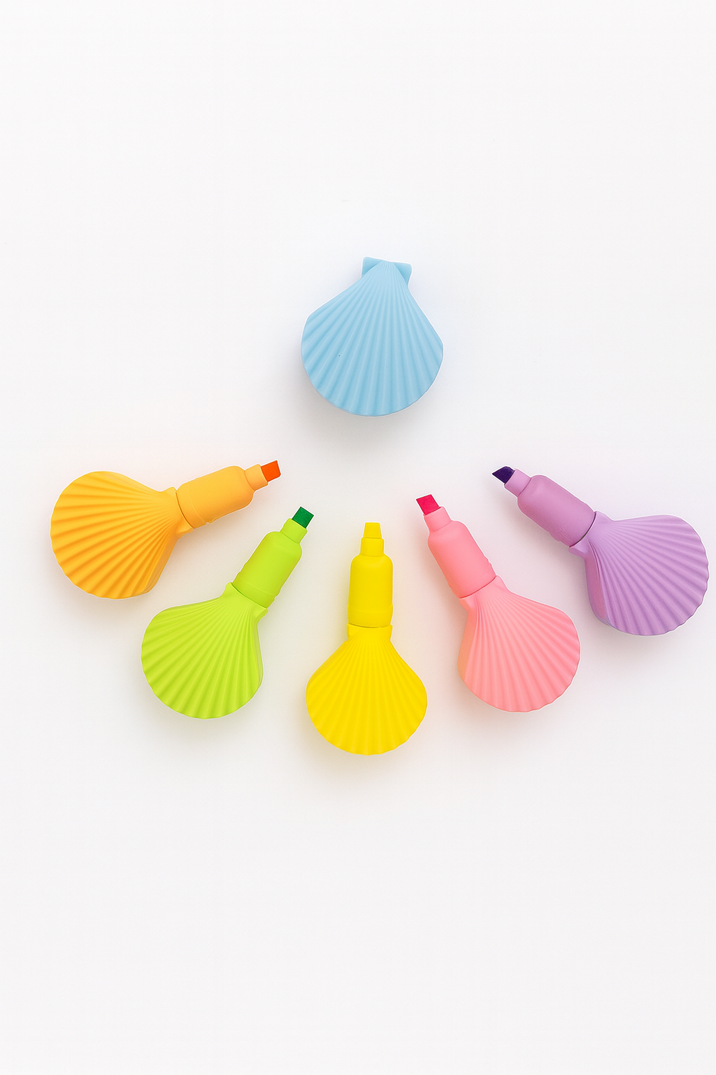 Clickety Clack deniz kabuğu fosforlu kalem seti ile ders çalışmak, not tutmak veya çizim yapmak artık çok daha renkli ve eğlenceli. Hem okul hem de ofis kullanımı için uygundur.