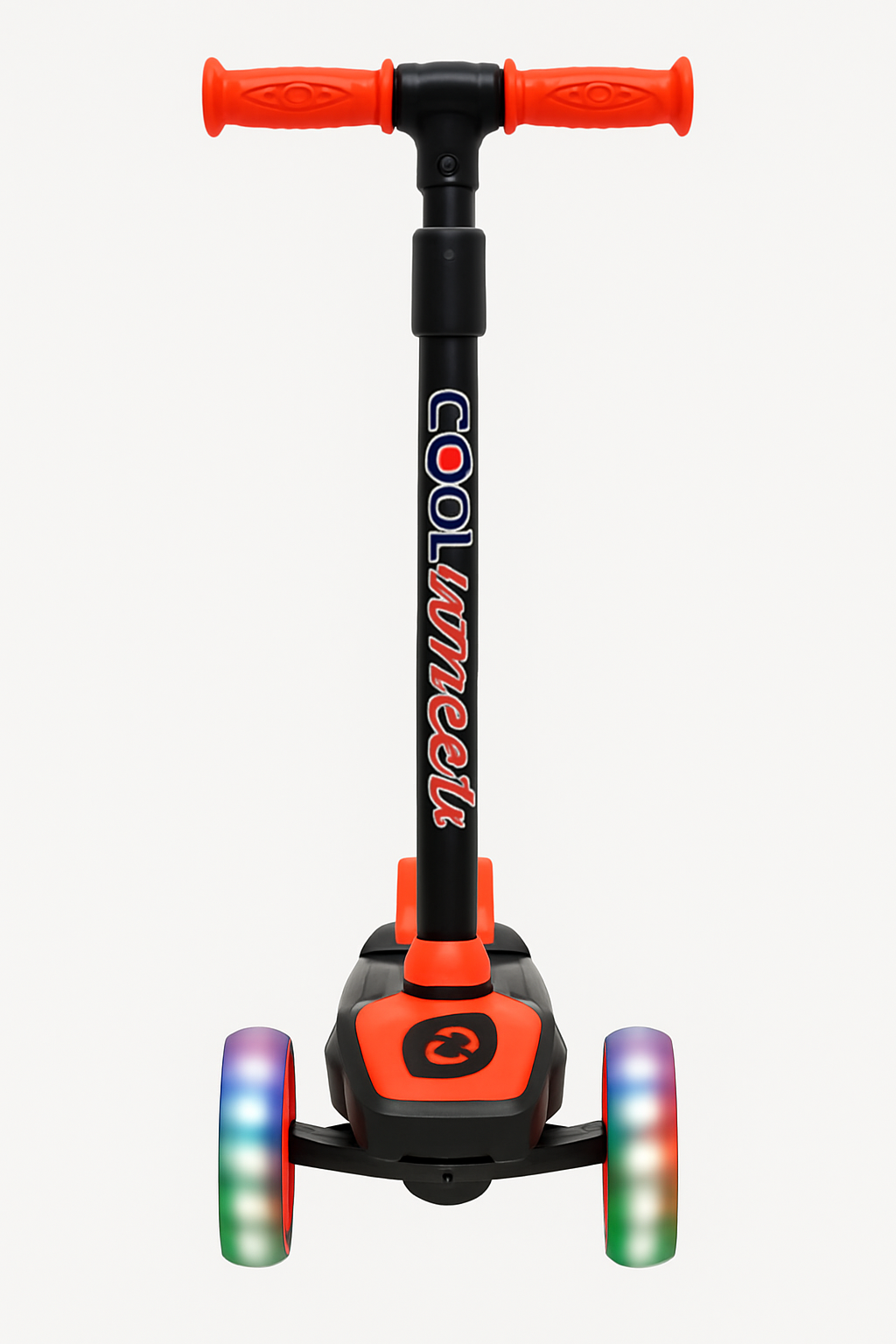Cool Wheels çocuk scooter, LED ışıklı scooter, 3 tekerlekli scooter, denge scooterı, çocuklar için scooter gibi en çok aranan anahtar kelimelerle öne çıkar. Çocukların güvenle eğlenmesi için tasarlanmış olup, ayarlanabilir direksiyon yüksekliği, geniş taban yapısı ve güvenli fren sistemi sayesinde uzun yıllar kullanılabilir.