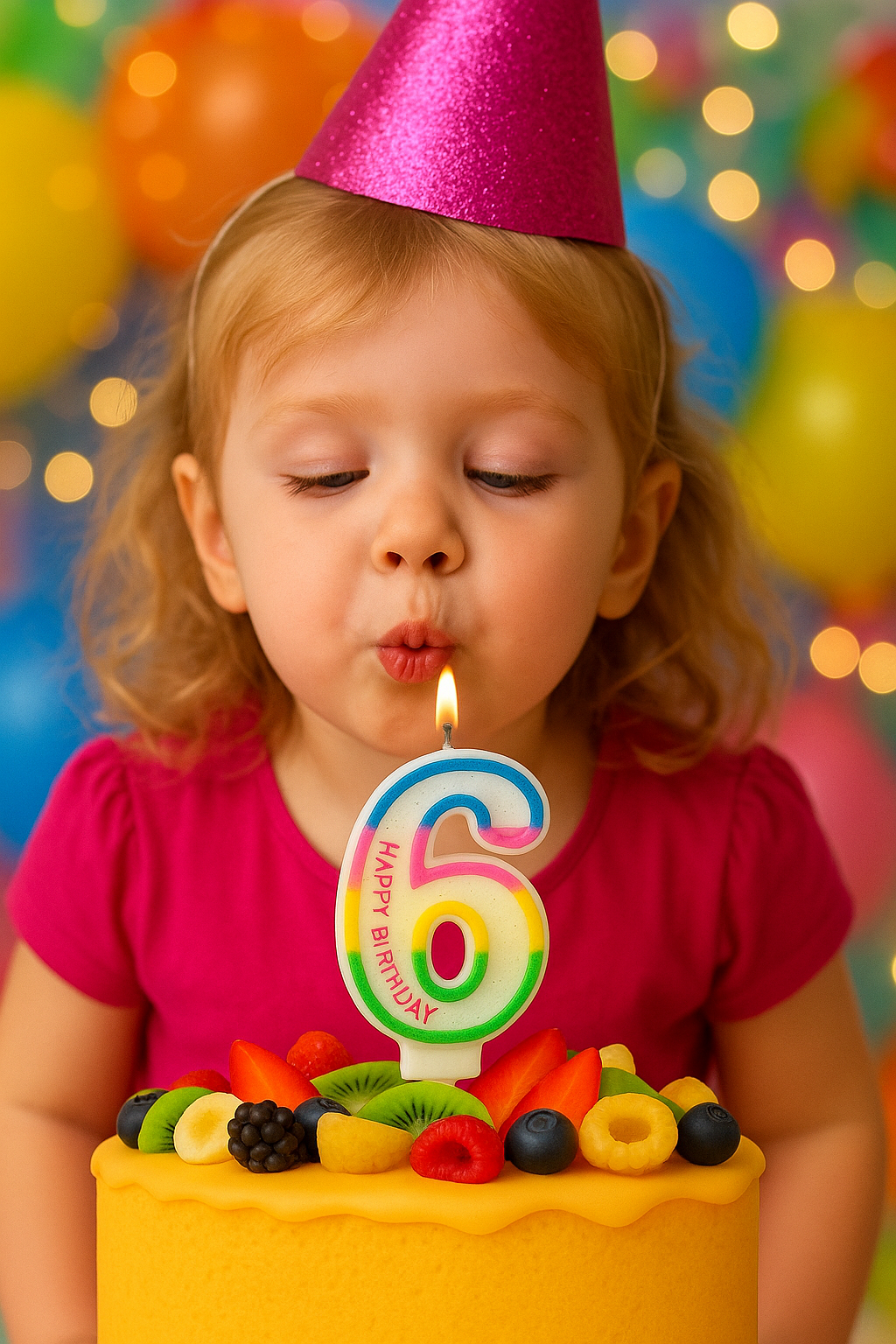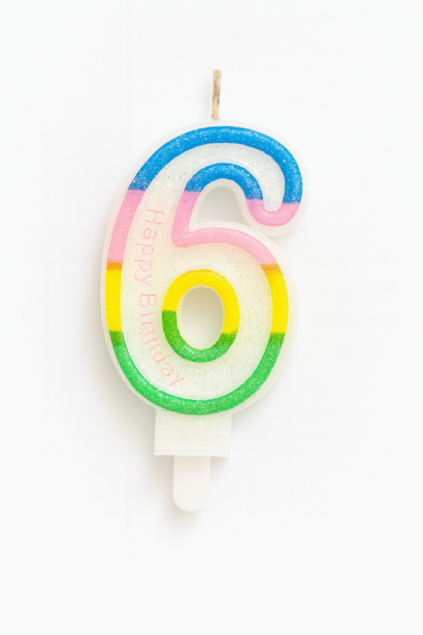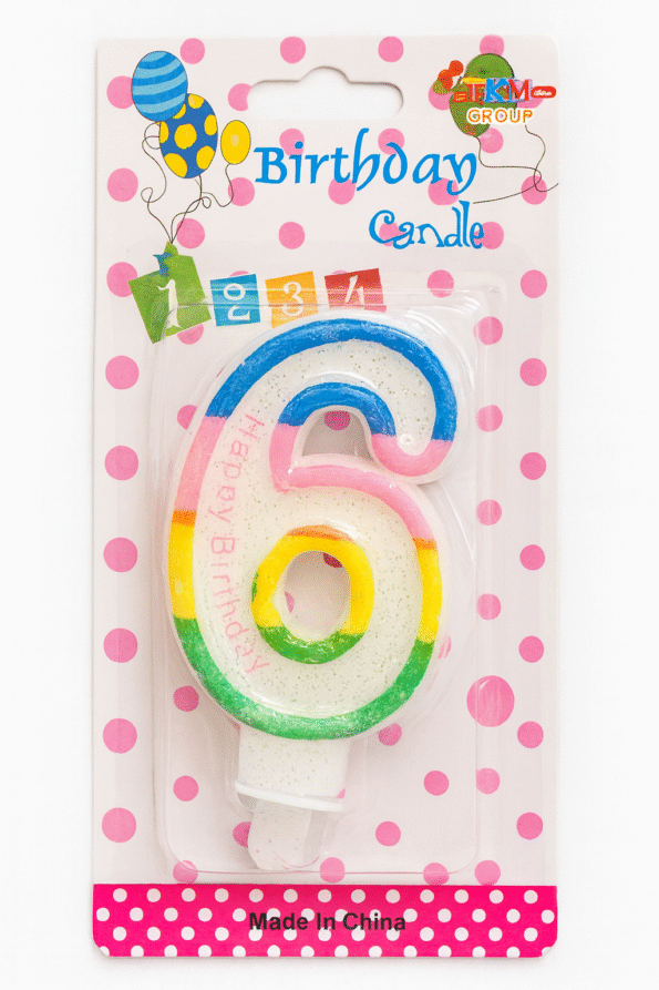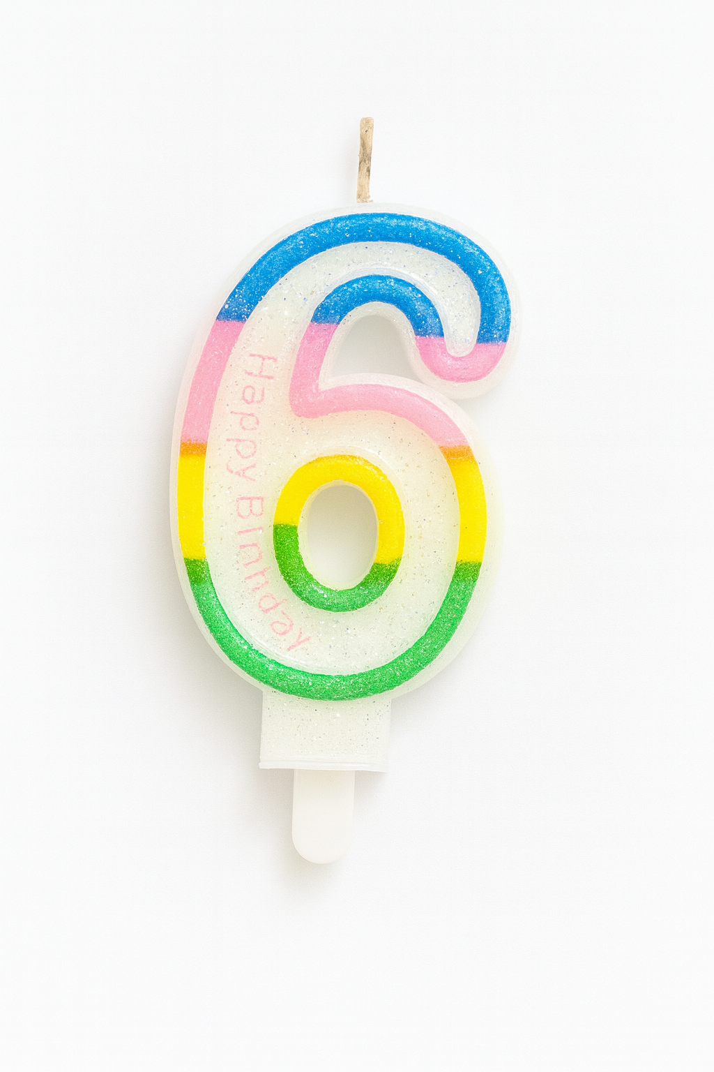 Doğum günü pastalarına neşe katın! TRM Group 6 rakamlı renkli pasta mumu, canlı renkleri ve “Happy Birthday” yazılı şeffaf yüzeyiyle partilerin enerjisini yansıtıyor. Mavi, pembe, sarı ve yeşil tonlarıyla süslenmiş bu mum, çocukların doğum günlerinde hem eğlenceli hem de şık bir görünüm oluşturur. Parlak sim detayları sayesinde ışıkta pırıl pırıl parlar.